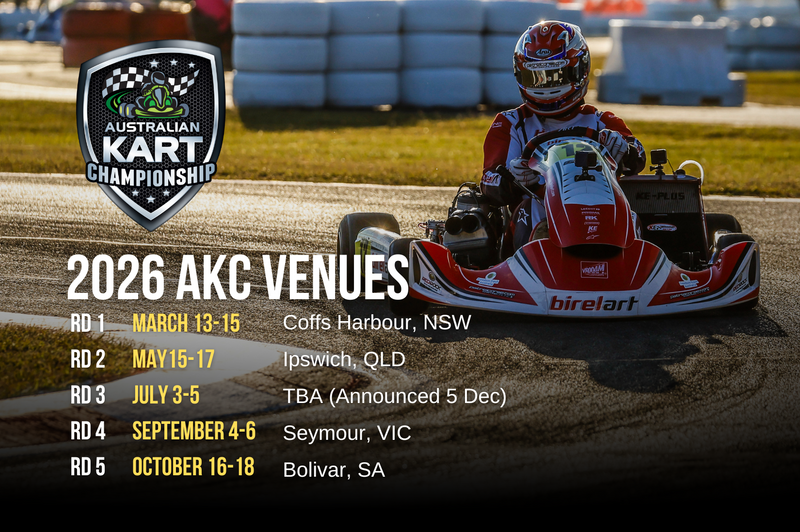 Karting Australia has finalised the dates and venues for the 2026 Australian Kart Championship, with five rounds to be hosted...